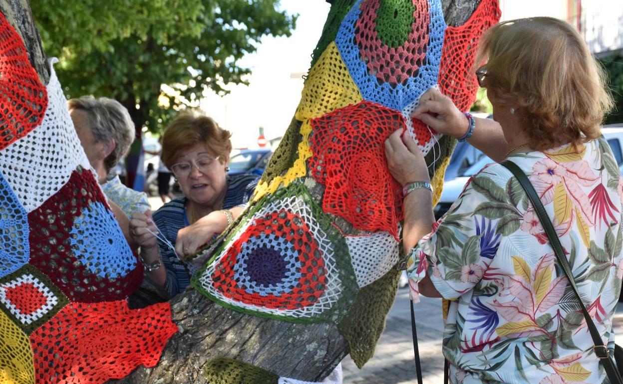 La Asociación de Mujeres Rurales Santa Ana ha vuelto a inundar de color el Parque de España vistiendo los troncos de los árboles con los tapices de ganchillo con los que ya sorprendieron el pasado año.