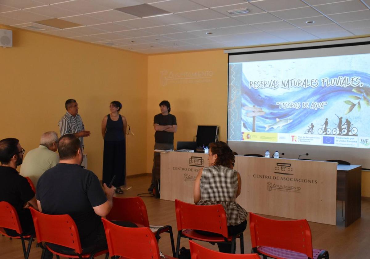 El salón de actos del Centro de Asociaciones acogió en la mañana del miércoles la reunión de la Red Natural Fluvial de las riveras de Albarragena, del Fraile y de Alcorneo, que contó con la presencia de técnicos de la Confederación Hidrográfica del Guadiana.