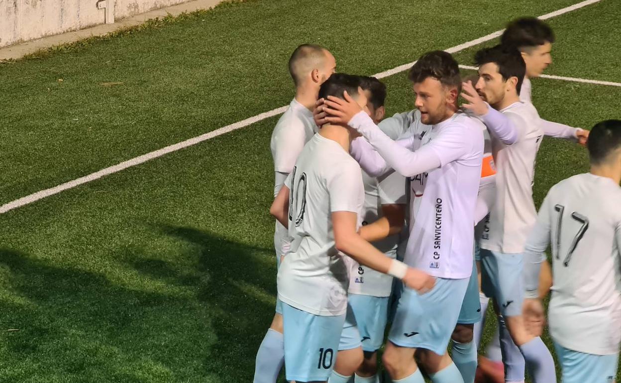 Los de Emilio Tienza salieron más enchufados que los de Marco Calaça, y desde el primer minuto presionaron a los locales ganando la mayoría de los balones de medio campo hacia delante. Fruto de la insistencia y presión llegó el primer gol del sanvicenteño cuando el luminoso contaba siete minutos desde el inicio. El mayor de los hermanos Pacheco, Pike, se hizo con un balón en tres cuartos de campo y no dudó en chutar que se coló por la escuadra de Óscar llevando el delirio a la afición visitante, muy numerosa en la tarde de ayer.