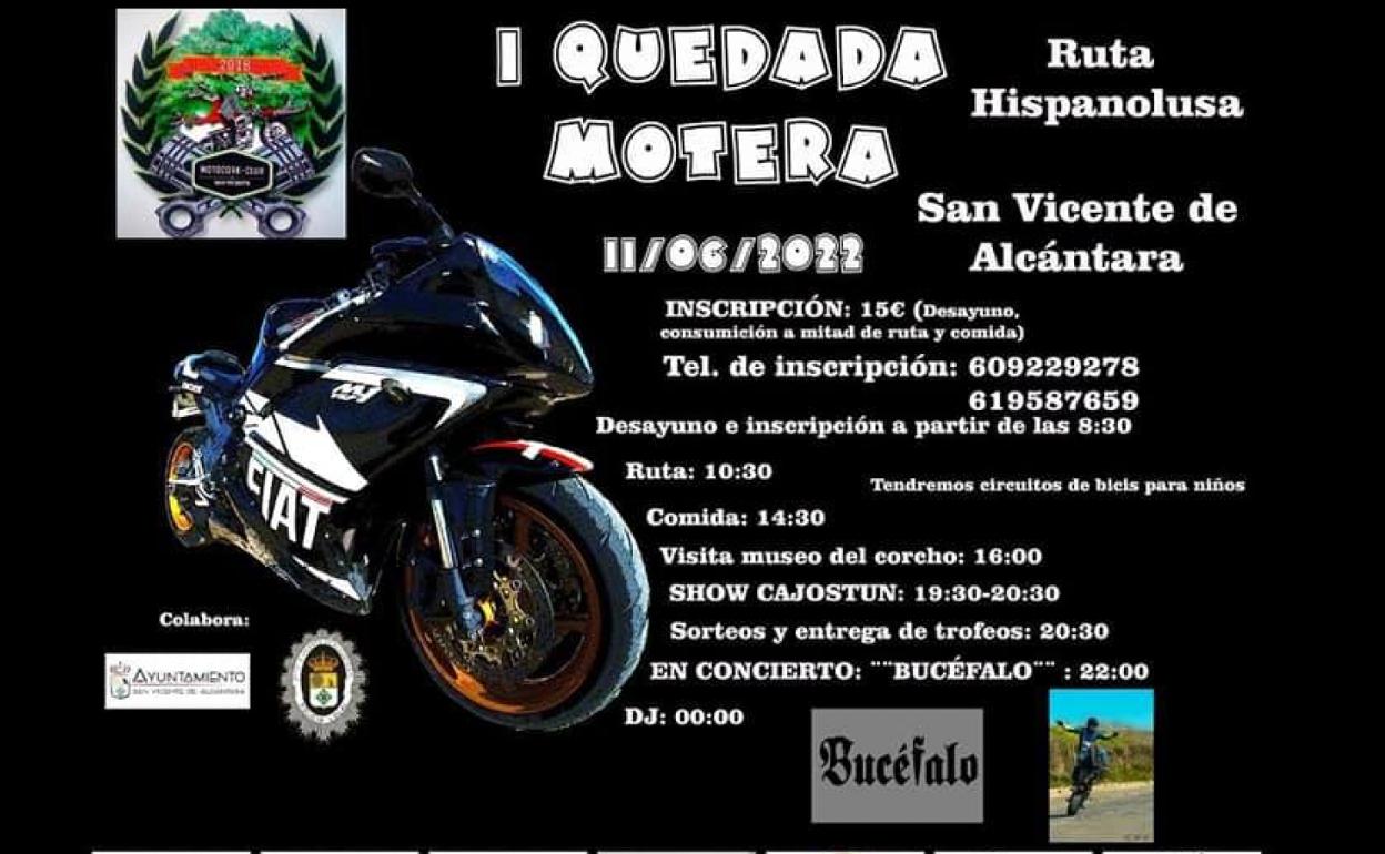 La Asociación Motera Motocork Club de San Vicente de Alcántara realiza este sábado 11 de junio en el parque de la Pared Nueva de San Vicente de Alcántara su primera quedada motera, la cual acogerá a unos 250 moteros.